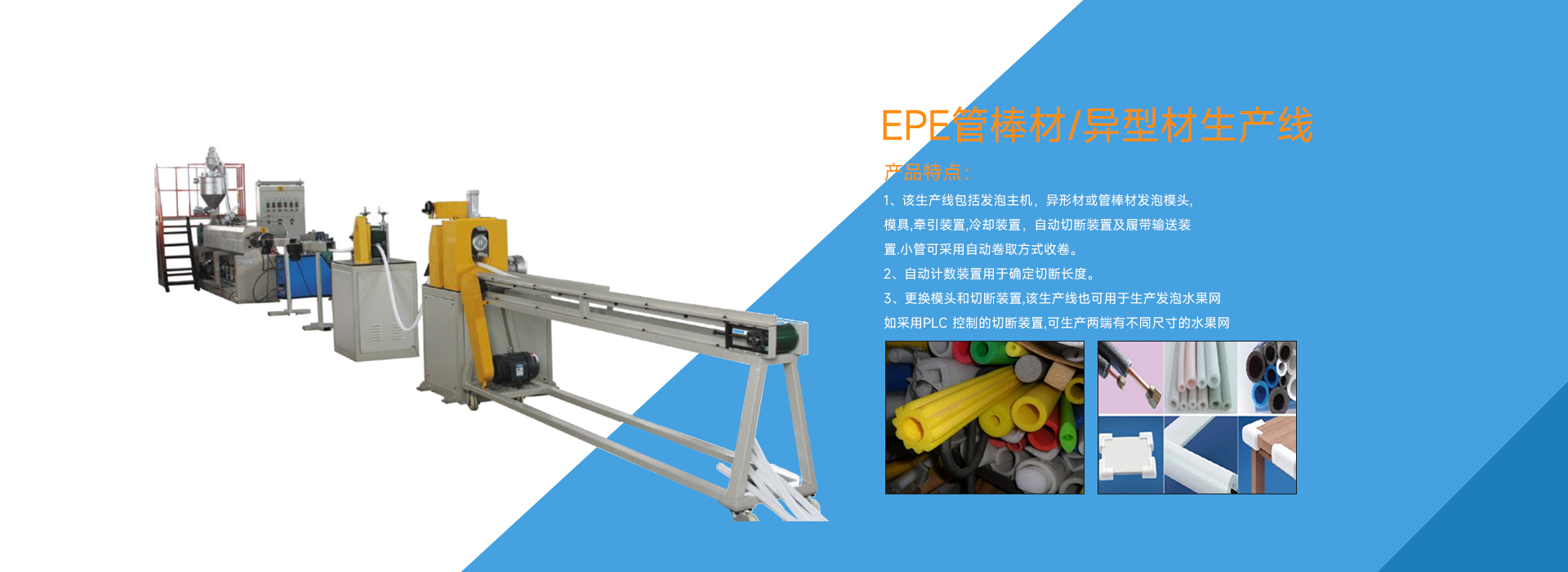 經(jīng)過多年的發(fā)展,現(xiàn)在,公司的產(chǎn)品涵蓋了EPE珍珠棉系列設(shè)備、流涎膜系列設(shè)備、塑料袋整套設(shè)備,廢舊塑料回收造粒系列設(shè)備及其它塑料加工設(shè)備。在產(chǎn)品的研發(fā)和制造技術(shù)領(lǐng)域里,不斷導(dǎo)入全新概念,將產(chǎn)品全面導(dǎo)向自動(dòng)化。產(chǎn)品暢銷東南亞,中東,南美,俄羅斯及其它各地,贏得了國(guó)內(nèi)外客戶的高度信賴和贊譽(yù)。此外...